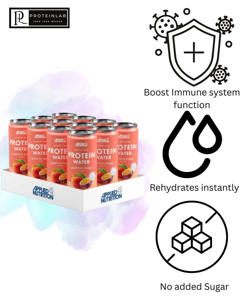 The Applied Nutrition Sparkling Protein Water is a good way to rehydrate after a good workout. This Drink offers a wide variety of benefits from being high in proteins, to tremendously rehydrating. It also contains vitamin C, in sufficient amounts. Which makes this drink not only key for your post workout recovery, but great for daily consumption for that needed daily immune booster. In addition the Applied Nutrition Sparkling Protein Water is very low in sugars and the resultant caloric gains are minimal, at 207 calories a can, so your workout and diet goals will not be negatively affected by consuming it