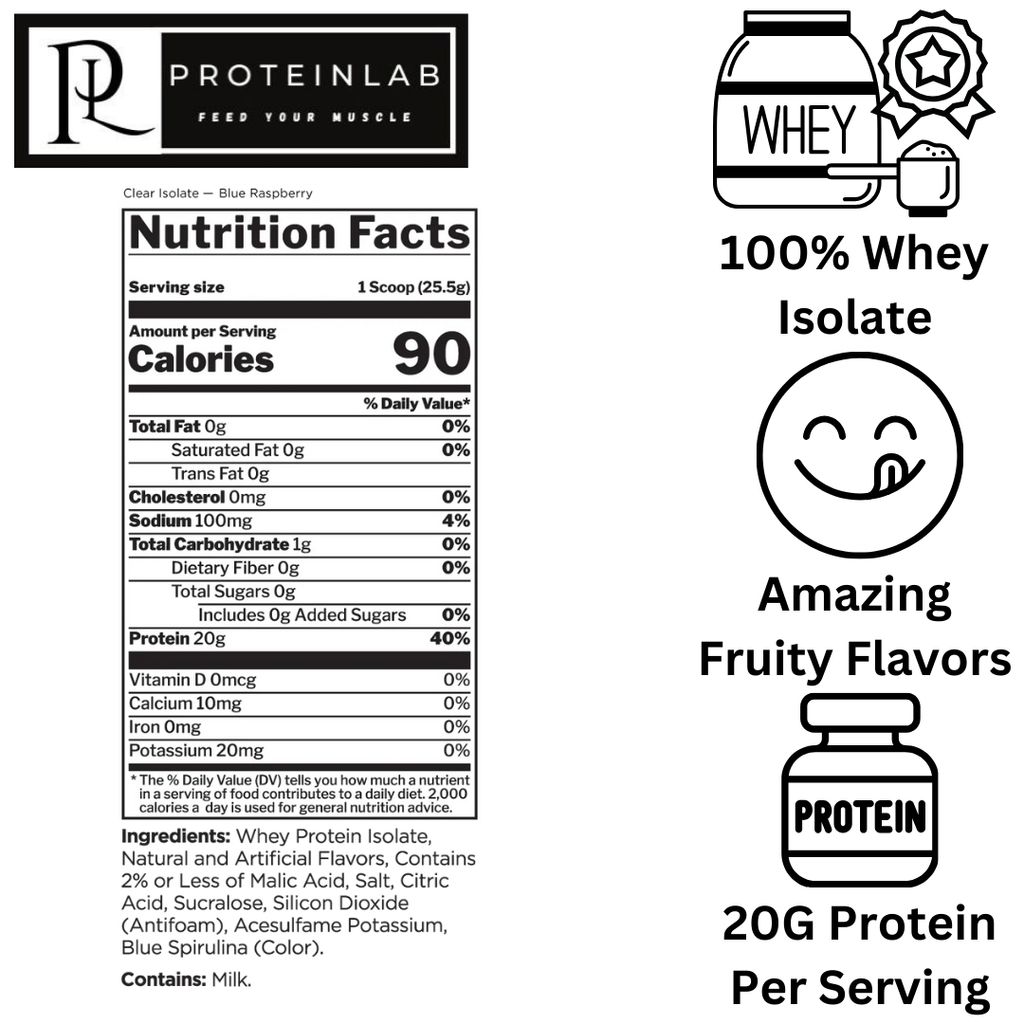 Each serving provides 20g of 100% pure whey isolate, which is a fast-absorbing protein source essential for muscle repair and growth.