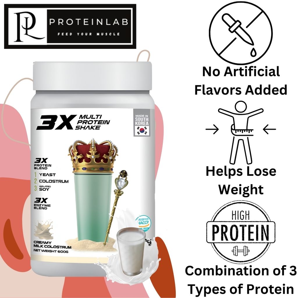 Contains milk protein and immunoglobulins, which fortify the immune system. The 3X Protein Multi Protein Shake (600G) contains Isolated Whey Protein, which gives you an excellent source of protein that's beneficial for not only your muscles but also your general health and well-being.