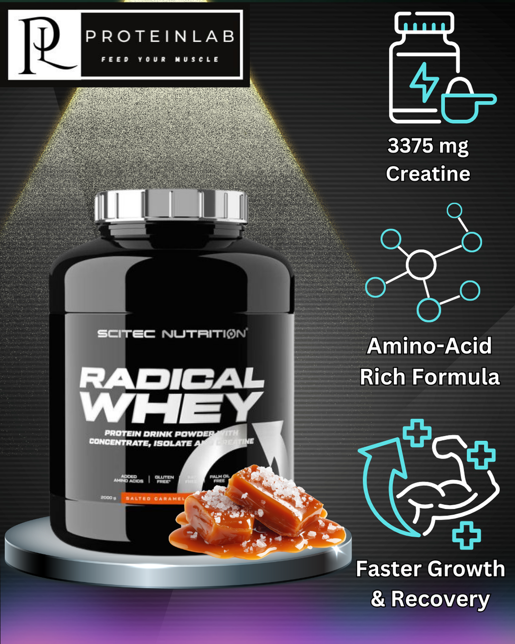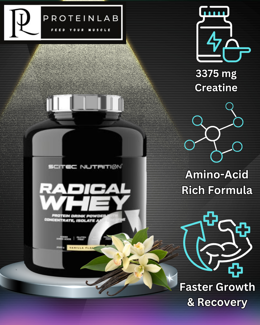 Scitec Nutrition Radical Whey delivers the all essential and non-essential amino acids needed for optimal muscle repair, growth, and recovery. This profile maximizes muscle protein synthesis, especially post-workout leading to greater strength and size gains. It accelerates recovery by reducing soreness and breakdown, supports lean mass while minimizing fat, and enhances endurance for longer, harder sessions.