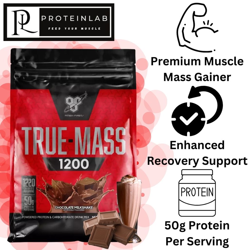 BSN True Mass 1200 Ultimate High-Calorie Mass Gainer with 50g Protein, BCAAs & EAAs (10lbs) (Expired: 5/24)