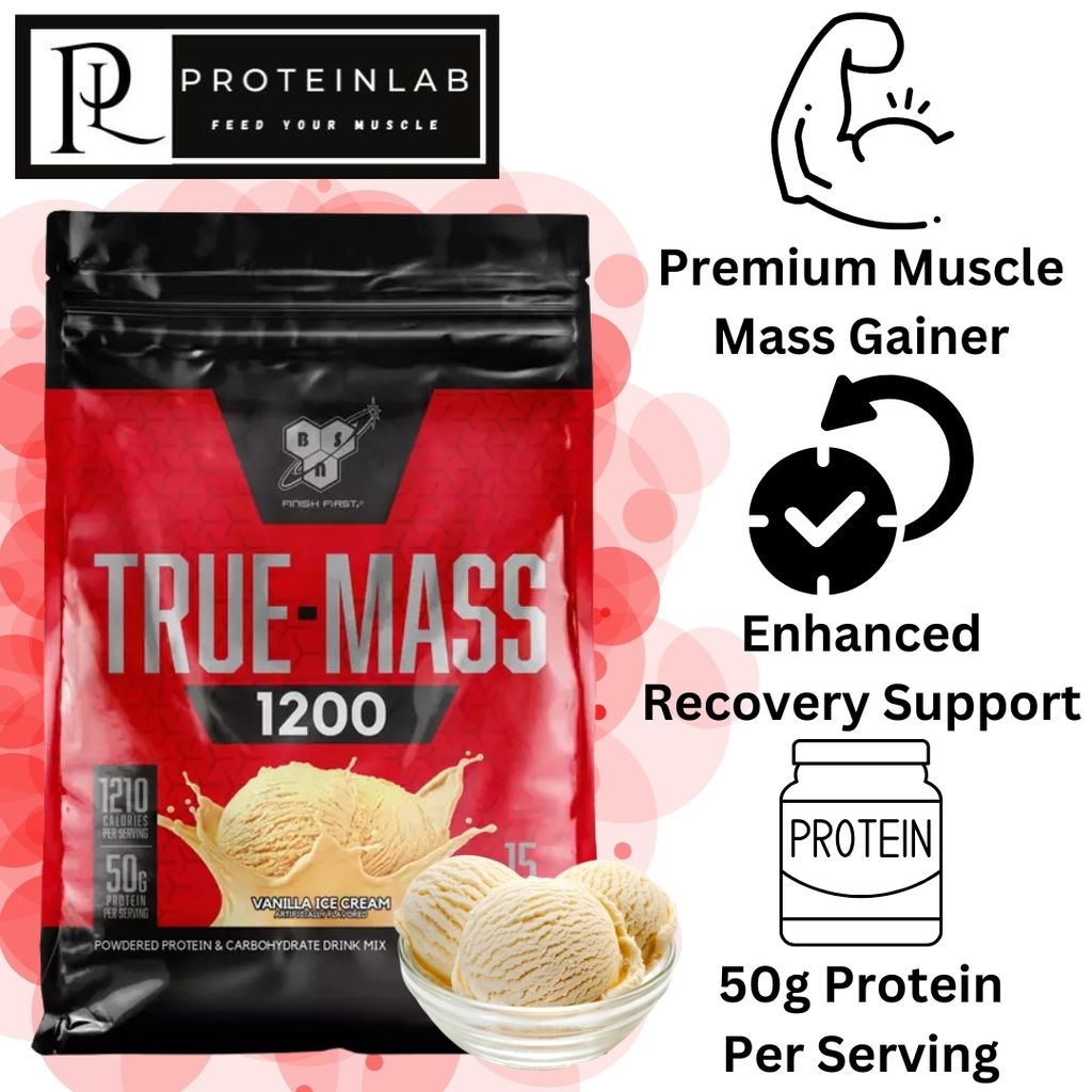 BSN True Mass 1200 Ultimate High-Calorie Mass Gainer with 50g Protein, BCAAs & EAAs (10lbs)