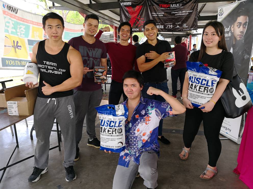Here is Team ProteinLab Malaysia booth in MMU FOMS Health Day '18 were offering Bsn protein bar, Nitrotech Cruch Protein bar, On whey gold standard 5lbs, Giant Sport Muscle maker , Scivation xtend bcaa , On whey chocolate single serving packs and many more for the day