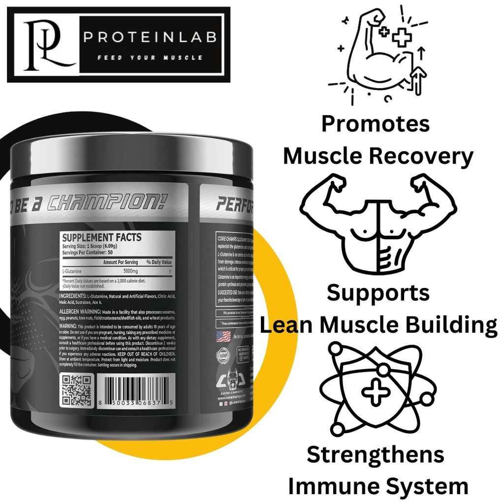 What sets Core Champs Glutamine apart is that YOU can always count on their unwavering commitment to quality and efficacy. There's no doubt about that when you look at Core Champs Glutamine Supplement here. Sourced from premium ingredients and backed by rigorous scientific research, this glutamine supplement delivers unparalleled results. But that's not all. They've gone above and beyond to ensure versatility and satisfaction, offering a delectable array of flavors to tantalize your taste buds. With Core Champs Glutamine, you're not just investing in a supplement – you're embracing a lifestyle of peak performance and unparalleled satisfaction. As you already know, here at Proteinlab, we give you the best. Become a champion today with Core Champs Glutamine.