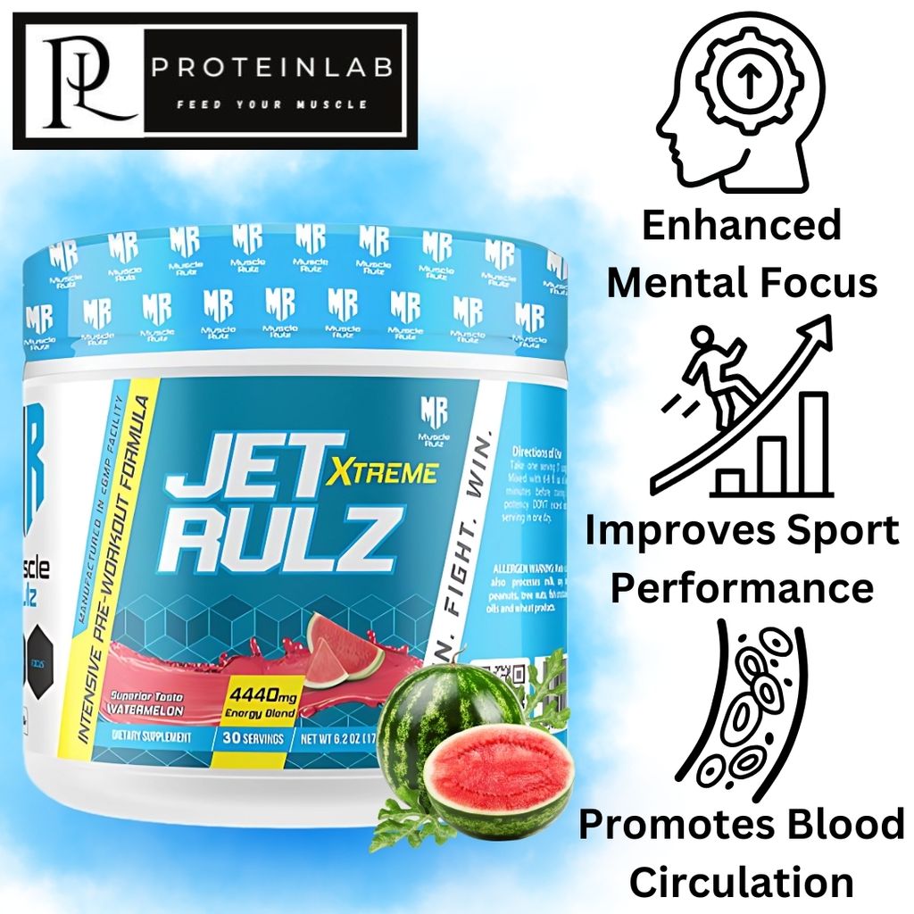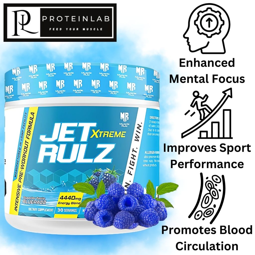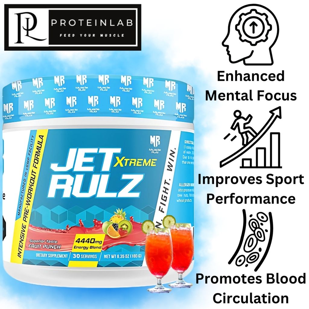 Introducing MuscleRulz Jet Rulz Xtreme Pre-Workout, the ultimate pre-workout formula designed to take your fitness journey to the next level! Unleash the power within you and conquer your workouts with unrivaled energy, focus, and performance.